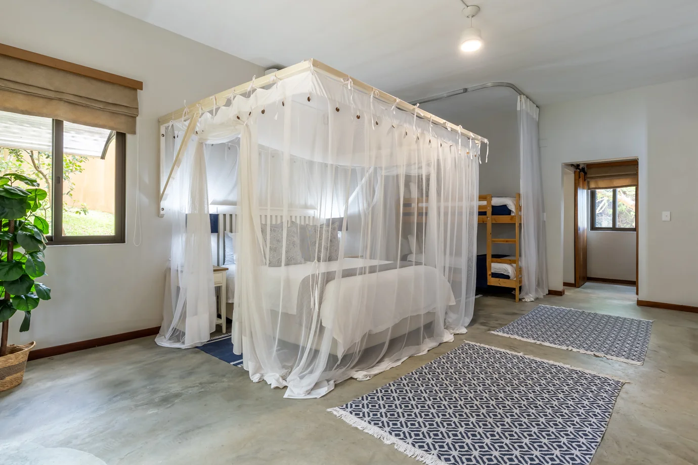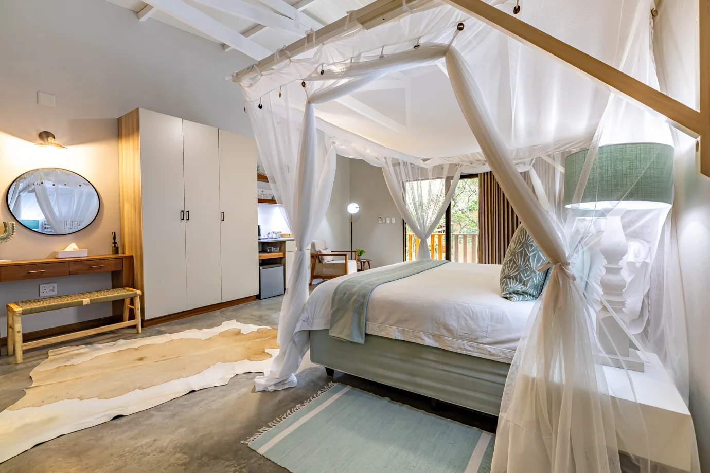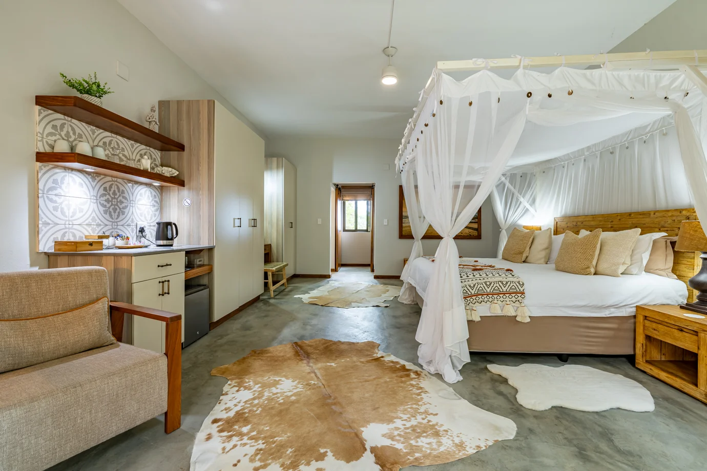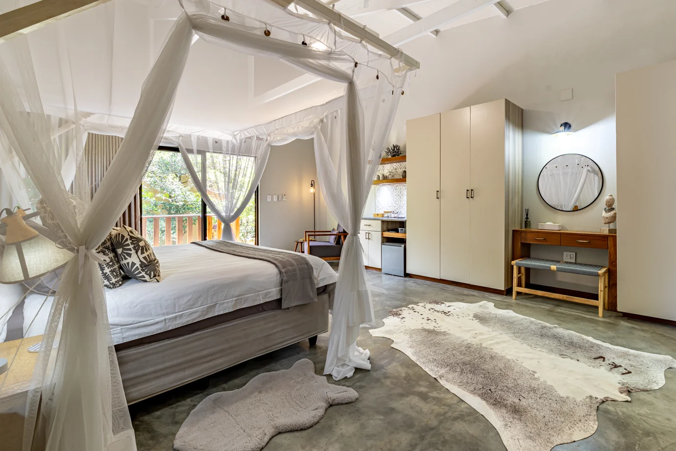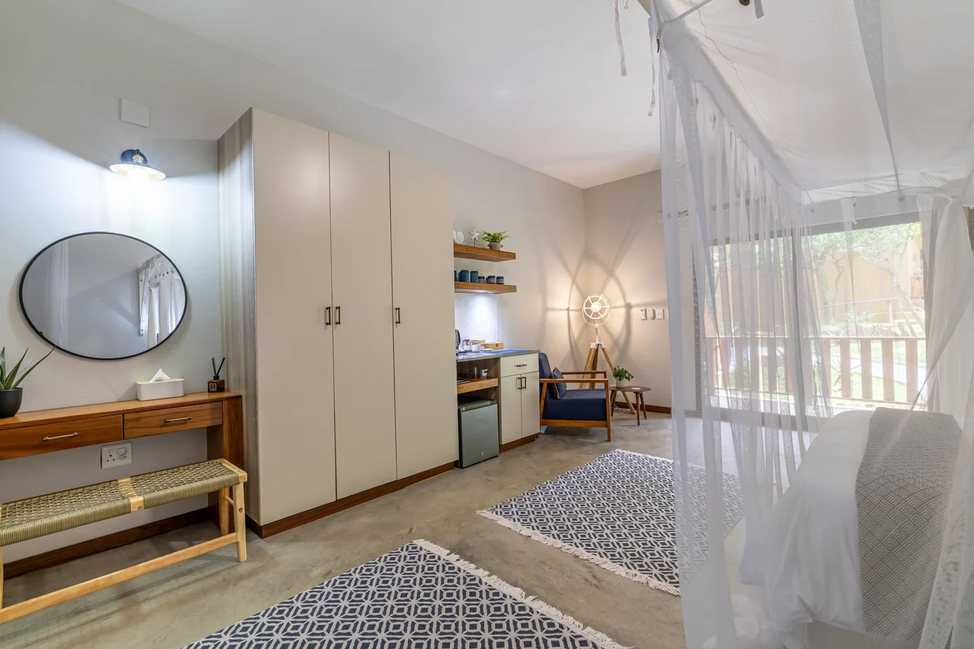 Our sumptuously designed air-conditioned Garden Suites are visually balanced to create an energy that’s both calm and inspiring. Together our four garden suites form a harmonious retreat, each with its own character yet united by the lush surroundings of indigenous trees and vibrant greenery. Whether seeking quiet reflection, cheerful mornings, or intimate relaxation, the suites provide a welcoming sanctuary where the garden itself becomes part of the living experience.